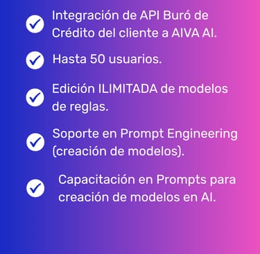 Para el Plan AIVA MAX cliente debe contar o adquirir las APIs requeridas.